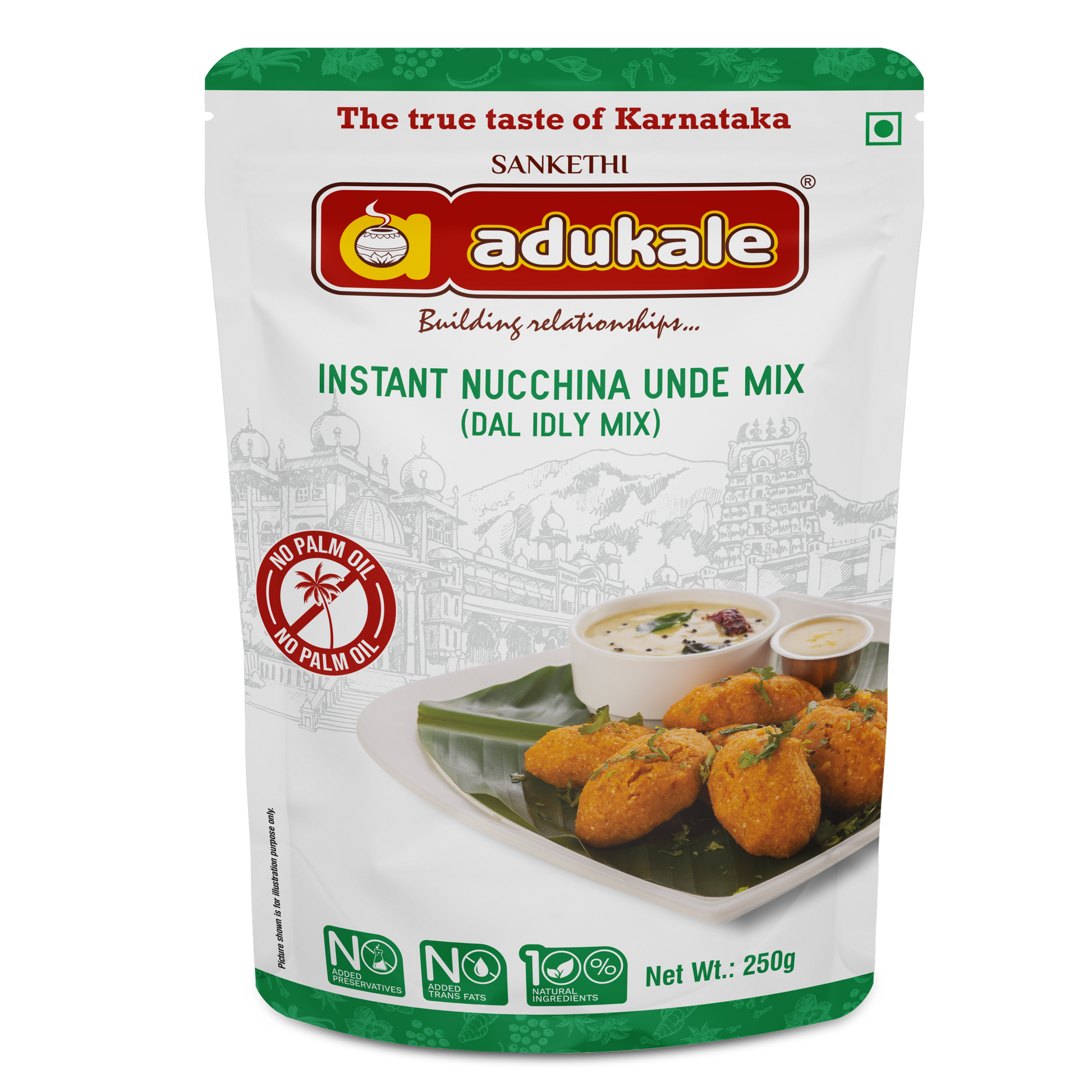 Nucchina Unde MixExpertly crafted Instant Nucchina Unde Mix provides a unique blend of traditional flavors and modern convenience. Made with carefully selected ingredients, this dal idly mix creates soft and fluffy dumplings, perfect for a quick and delicious meal. No more hassle, just deliciousness in minutes.