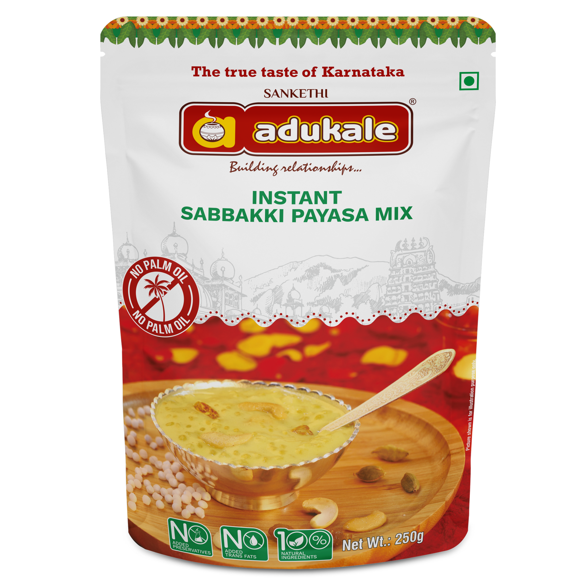 Experience the convenience of instant preparation while savoring the traditional flavors of Sabbakki Payasa. Adukale's Instant Sabbakki Payasa Mix is your perfect companion for creating a delicious, aromatic, and creamy dessert effortlessly. Enjoy the sweet moments with Adukale, bringing tradition and taste to your table.
