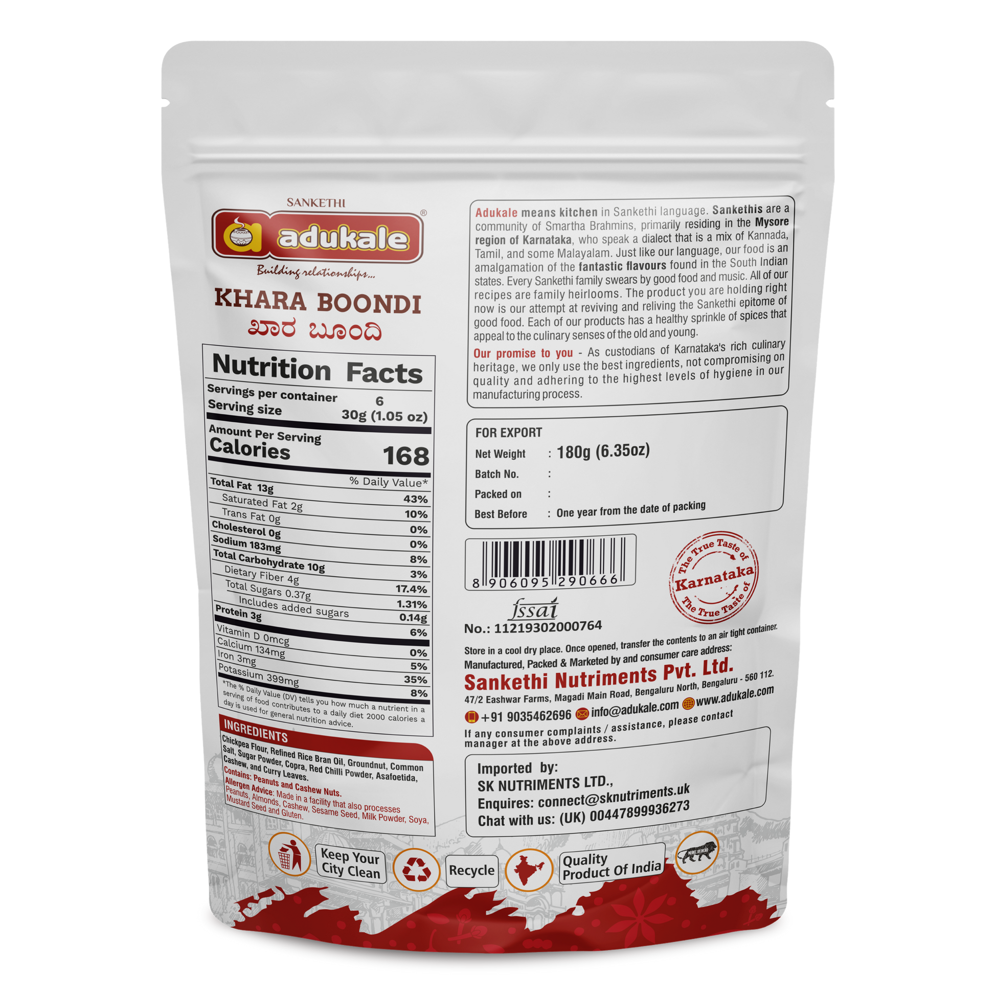 Khara BhoondiAs a delectable combo with bisi bele bhath, Khara Boondi enhances the overall flavor of your dish, leaving your taste buds satisfied. Made with quality ingredients and expertly crafted, this Khara Boondi is perfect for those seeking an authentic and flavorful experience.